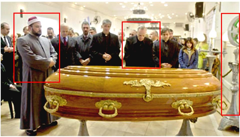Left photo ... Bergoglio in a "mosque" ... pretending that the deceased "muslim"